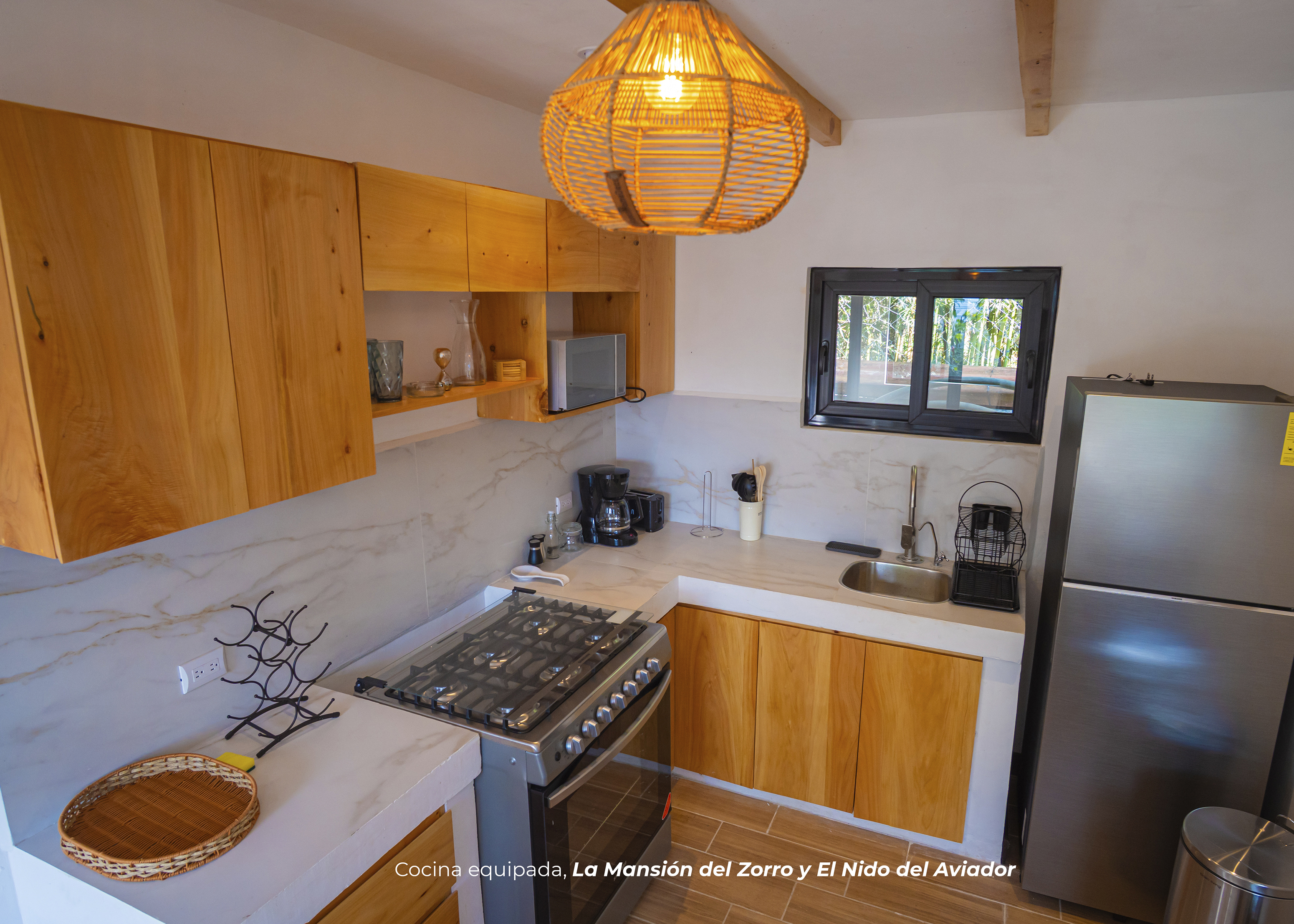 Un espacio para viajeros que valoran diseño y concepto. Está junto a la carretera, por lo que hay movimiento de vehículos. Las ventanas dobles reducen el ruido, aunque no lo eliminan por completo. Si priorizas silencio absoluto, quizá otra de nuestras villas sea mejor.
